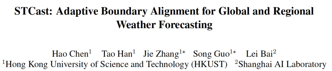 [1] Hao Chen, Tao Han, Jie Zhang, Song Guo, Lei Bai. STCast: Adaptive Boundary Alignment for Global and Regional Weather Forecasting. CVPR 2026 (Highlight).