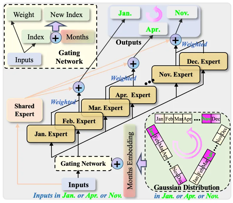 •输入数据会根据月份激活对应的专家及其相邻专家,既保证了时间特异性,又保留了月份间的连续性